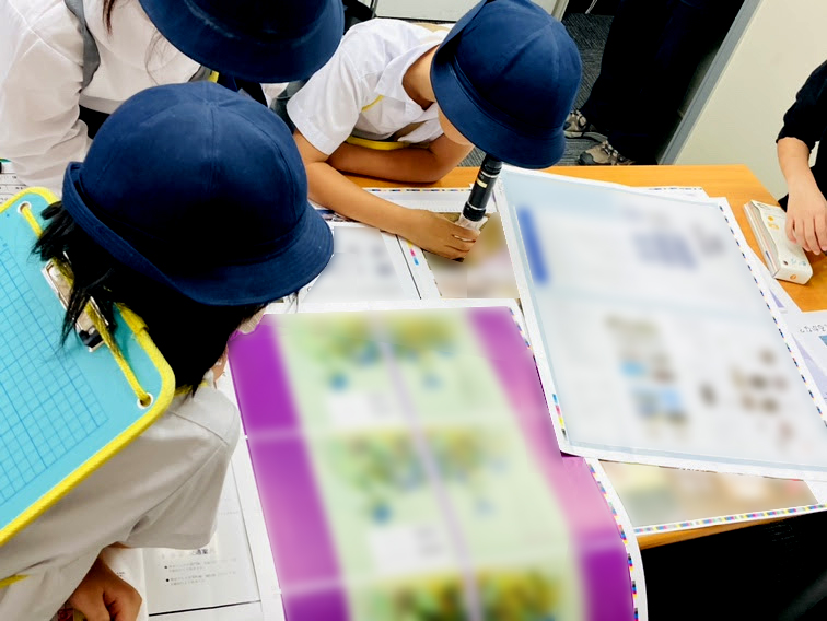 折丁や網点についても簡単に触れ、色は点で表現されていることを実際にルーペで確認してもらいましたが、